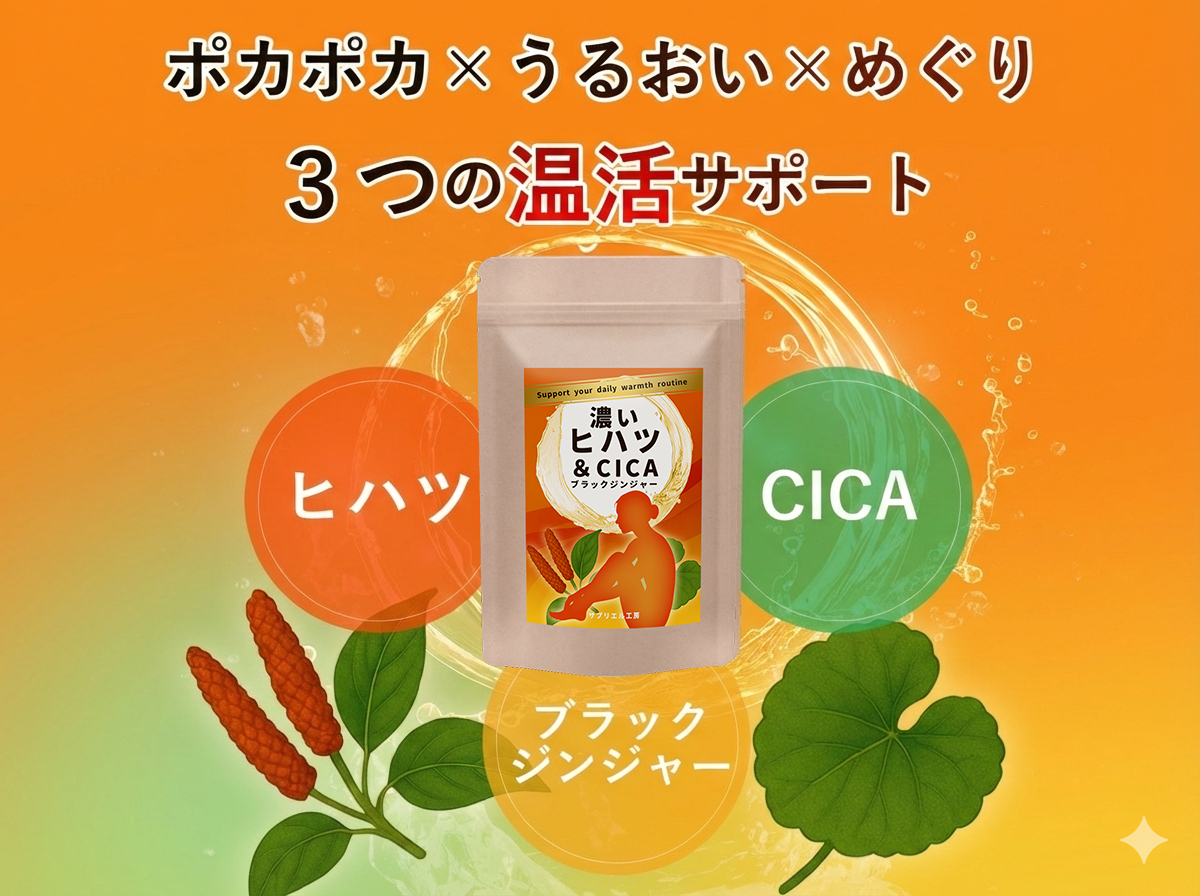 【濃いヒハツ&CICA&ブラックジンジャー】温活サプリ GMP日本国内工場(約30回分60粒)送料無料